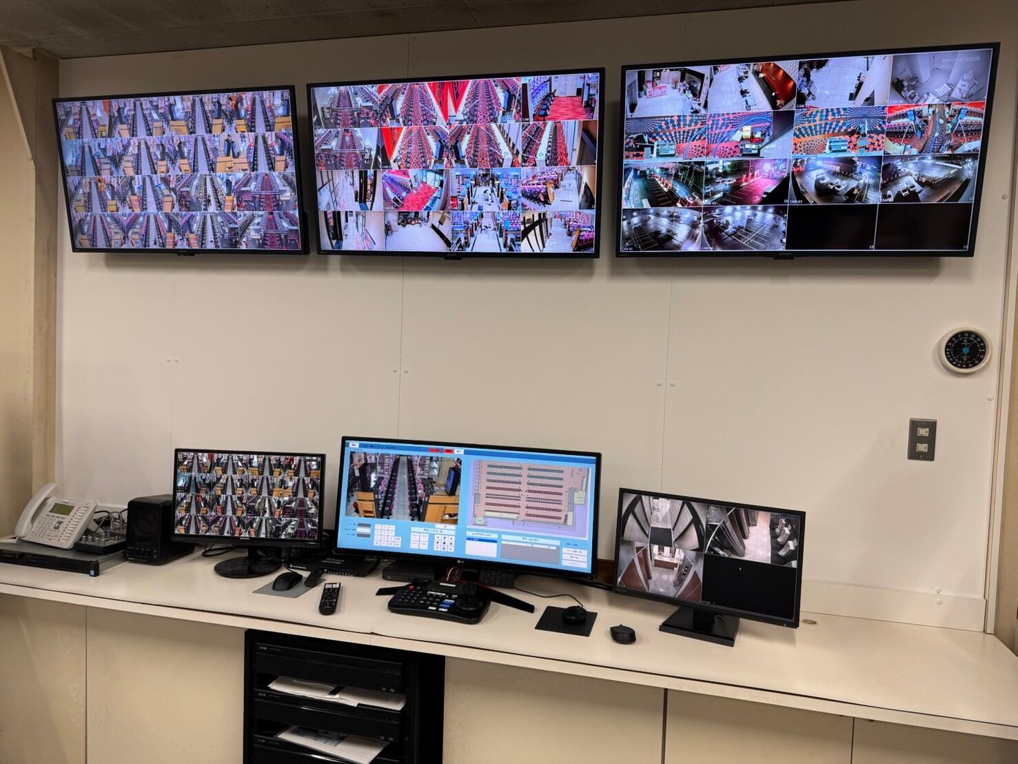 運営本部よりご依頼を受けて、アナログ同軸カメラから同軸ハイビジョンカメラで全面的にリプレース。配線の引き直しを一部省略し経済的なプランでご提案しました。モニターも大型に変更し、すぐにカメラ位置が把握できるようになったと好評です。
